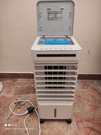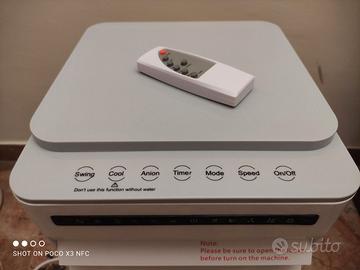 Condizionatore evaporativo COME NUOVO, raffreddatore d'aria evaporativo silenzioso di grandi dimensioni a Ioni Negativi, Condizionatore d'aria 4 in 1 (condizionatore, ventilatore, umidificatore e purificatore), Timer 1-7H, 3 Velocità di erogazione con funzione di oscillazione, Serbatoio dell'acqua da 5 L con ruote, Telecomando, Classe di efficienza energetica A.