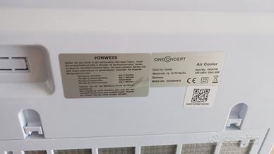 Condizionatore raffrescatore portatile senza tubo, ventilatore, ionizzatore, comandi digitali, rinfresca ambienti consumando davvero poco, non necessita di unità esterne o tubi, portatile e facilmente trasportabile grazie a maniglie ed a 4 rotelle. Telecomando.