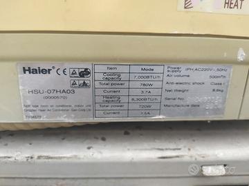 vendo condizionatore Haier come in foto perfettamente funzionante, smontato 2 anni fa ,manca telecomando, ma funzionava con telecomando universale.