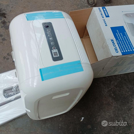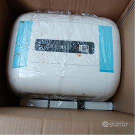 Condizionatore a rotelle, di circa 8 / 9. anni. Usato x circa un mese poi reinscatolato. Dovrei avere ancora pure lo scontrino, Quando l'ho riaperto x fotografarlo non ho fatto caso al telecomando, x cui ora non so se è nella scatola (non credo) oppure se non l'ho mai avuto,. perché ho visto dalle istruzioni che è opzionale,.quindi non indispensabile. Nel caso lo avessi in casa (cosa probabile) lo farò avere in un secondo momento all'acquirente. Non attivo la spedizione perché sarebbe un pacco molto grosso, meglio un ritiro sul posto