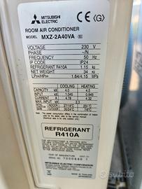 Condizionatore Mitsubishi dual split 9+9 BTU (unità esterna mod. MXZ-2A40VA e due split mod. MSZ-GC25VA). DA RIPARARE. Completo di telecomando