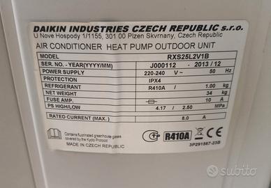 Condizionatore più split entrambi daikin modelli Rxs25l2v1b motore esterno Ftxs25k2v1b split interno Con anche il gas refrigerante certificato Ritiro a vostro carico no spedizioni