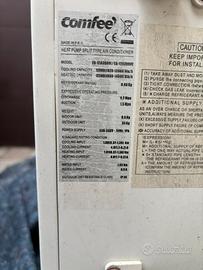 Vendo condizionatore con funzione di pompa di calore, marca Comfeè. Split e Motore con ancora il gas all’interno. disponibile telecomando e piastra per attacco al muro dello split.