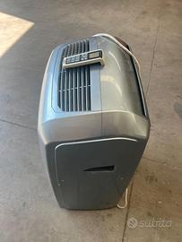 Vendo condizionatore portatile de Longhi con raffreddamento aria ed acqua,con ruote per trasportarlo facilmente ,completo di tubo aria e telecomando.Misure in foto.