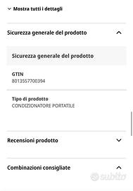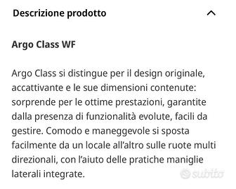 Vendo condizionatore portatile Argo Class (modello 8013557700394) in ottime condizioni, pari al nuovo, utilizzato solo per una stagione estiva. L’apparecchio è perfettamente funzionante e completo di tutti gli accessori originali. Caratteristiche principali: •Raffrescamento efficace per ambienti domestici •Facile da spostare grazie alle ruote •Pannello di controllo intuitivo •Modalità raffreddamento / ventilazione / deumidificazione •Ideale per stanze, camere da letto o piccoli soggiorni Usato pochissimo, acquistato circa un anno fa.