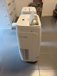 È un condizionatore portatile monoblocco con pompa di calore integrata, che permette di utilizzarlo sia per raffreddare che per riscaldare gli ambienti.