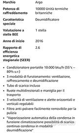 Vendo condizionatore portatile Argo Relax, acquistato a febbraio 2017 e utilizzato complessivamente per non più di 6 mesi. L’apparecchio è perfettamente funzionante in tutte le sue modalità: raffrescamento, ventilazione e deumidificazione.