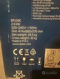 Condizionatore portatile BEKO - BP109C-Bianco •Raffreddamento nominale-Btu h:Cap.freddo 9000 Btu •Classe energia raffreddamento:Classe energetica di raffreddamento A •Serbatoio estraibile:Con Serbatoio estraibile •Pompa di calore:Con pompa di calore Dettagli strutturali •Composizione impianto - Monoblocco Prestazioni •Raffreddamento nominale-Btu h9000 •Raffreddamento nominale-Kw2,6 •Coefficiente SEER2,6 •Tipo di gas utilizzatoR-290 Efficienze •Classe energia raffreddamento A Consumi •Consumo energia annuo freddo-kWh1 Funzioni e Plus •Pompa di calore •Inverter •Display •Timer •Funzione deumidificatore •Funzione Notte •Altre funzioni - Solo raffrescamento, Connessione WIFI con APP HomeWhiz, Controlli vocali, ZoneFollow, Dolce Sonno, Timer 24h, Autorestart, Deumidificatore, Display Digitale, Telecomando. •Auto-restart •Serbatoio estraibile Filtri •Altre caratteristiche filtri - Filtro ad alta intensità Accessori •Telecomando
