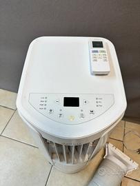 Vendo, per inutilizzo, condizionatore portatile perfettamente funzionante. Completo di tubo estendibile fino a 1 metro e 50 (da 50cm a 150cm) per la fuga di aria calda all’esterno. Telecomando originale (senza coperchio posteriore dato l’inutilizzo di esso) Il condizionatore è dotato di varie funzionalità, come ad esempio il comando a distanza tramite wi-fi, eroga solamente aria fredda da un minimo di 16º ad un massimo di 26º. Presenta anche lo scarico per la condensa nel retro del dispositivo. Non ha bisogno di acqua/ ghiaccio, si collega solamente alla corrente e l’aria fredda esce in pochissimo tempo. È stato utilizzato in estate per rinfrescare un area di 50mq, non ho mai utilizzato il telecomando perché presenta un display più rapido dove impostare le varie temperature e modalità, ecco perché è stato perso il coperchio posteriore. Ha semplicemente bisogno di una spolverata.