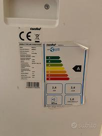 Splendido Condizionatore portatile COMFEE 9000btu, perfettamente funzionante con tutti gli accessori originali( telecomando e prolunga per esterno) non necessita di contenitore per la condensa in quanto la vaporizza automaticamente e la espelle dal tubo di scarico esterno, vendo per trasferimento presso altra abitazione già predisposta da condizionatori.