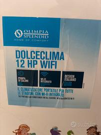 Condizionatore portatile Olimpia splendid Dolceclima 12HP con Pompa di calore e WiFi integrato completo di tubo per l'esterno e manuali di istruzione.