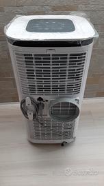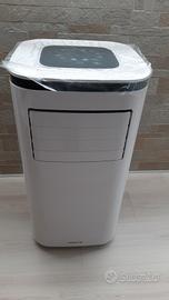Condizionatore portatile 4 in 1 con Wi-Fi: aria condizionata da 9000 BTU (equivalenti a 2270 frigorie), deumidificatore fino a 24 litri al giorno, ventilatore e riscaldamento da 1010W / 5500 BTU. Ha una copertura fino a 25 m2 e un design elegante e moderno. Ha un telecomando + connessione WIFI per gestione tramite APP e comprende un kit di estrazione dell'aria per finestre.