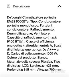 Condizionatore Portatile DeLonghi 9000 btu