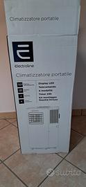 Condizionatore portatile Epectroline nuovo, ElectrolineCLEH07R5, classe energetica: A, consumo di energia per ora: 0,8kw, display LED, funzioni: raffreddamento, deumidificazione, ventilatore, capacità di raffreddamento 7000btu/h , fornito con telecomando e kit montaggio finestra con tubo di scarico aria calda.