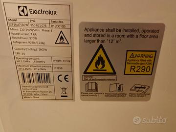 Vendo climatizzatore portatile Electrolux ChillFlex Pro Gold (EXP26U758CW) in ottime condizioni. - 9000 btu/h - Classe energetica A++ (consumi ridotti) - Silenzioso (60 dB) - Completo di tubo scarico aria e accessori - Funzionante al 100% Perfetto per raffrescare soggiorno, camera o open space. Ottimo anche come deumidificatore. Ottimo per chi non può installare split fisso. Vendo per inutilizzo causa installazione di split fisso