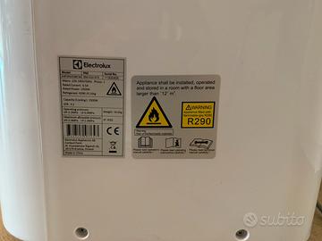 Vendi condizionatore portatile Electrolux EXP35U538CW, con funzioni: - condizionatore - deumidificatore - ventilatore. Provvisto di telecomando per controllo a distanza, tubo flessibile allungabile per l’aria e tubo in gomma per lo scarico dell’acqua. Ha funzione timer. Vendo con consegna a mano.