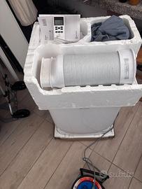 Ottimo condizionatore portatile in grado di rinfrescare fino a 40 mq Dotato di modalità sleep silenziosa per dormire serenamente al fresco dell'estate. Presenta anche la modalità di deumidificatore Il dispositivo è in Classe A+ per il raffreddamento, il che permette un risparmio energetico del 19% rispetto ai modelli standard di classe A. Non ho la scatola originale. Perfettamente funzionante Caratteristiche principali: •Raffreddamento + Riscaldamento (pompa di calore) •Classe energetica A+/A++ • Modalità sleep •Sistema auto-evaporante •Gas ecologico R290 •64 db Modalità silenziosa Completo di: •Telecomando originale •Tubo e accessori originali Lo vendo perchè dopo aver cambiato casa è rimasto inuilizzato. Consegna in loco, no perditempo