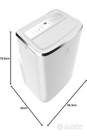 Electrolux Condizionatore portatile ChillFlex Slience EXP26U558CW, raffreddamento, silenzio e comfort, 61dB, Bianco Utilizzato solo una stagione. Vendo con scatola originale e ancora tutti gli adesivi di protezione attaccati Specifiche di raffreddamento: • Potenza: 9.000 BTU/h • Area coperta: fino a 30 m2 • Classe energetica: A+ ha una funzione deumidificatore integrata che rimuove l'umidità in eccesso dall'aria, migliorando il comfort anche quando non serve raffreddamento intenso.