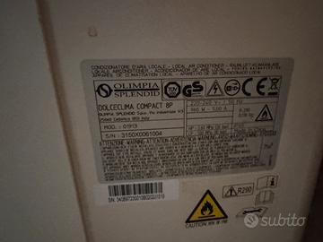 condizionatore portatile Olimpia Splendid Dolceclima Compact 8 P. Capacità di raffreddamento: 8.000 BTU/h (2,1 kW). Classe energetica: A. Refrigerante: Gas R290. Dimensioni: 34,5 x 35,5 x 70,3 cm. Consumo orario: 0,76 kWh.
