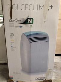 Vendo Olimpia Splendid Dolceclima usato. L'apparecchio è perfettamente funzionante e raffredda velocemente nonostante l'età, in quanto usato solo saltuariamente (nei giorni più caldi d'Agosto). Qualche residuo di nastro adesivo sulla parte superiore (da pulire). Il telecomando non è presente (si comanda dai tasti a bordo) e il becco del tubo (in plastica) va tenuto insieme con nastro adesivo. Solo ritiro per ovvi motivi.