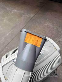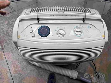 Completo di tubature e omaggio liquido anticalcare DeLonghi originale per eventuale pulizia futura (non necessaria al momento) Vendo per cambio di abitazione. Caratteristiche generali: De Longhi climatizzatore portatile PAC 46 Pinguino Climatizzatore portatile monoblocco acqua/aria. Completo di tubature e omaggio liquido anticalcare DeLonghi originale per eventuale pulizia futura (non necessaria al momento) Potenza frigorifera max 2,64 kW/h (9000 Btu/h), consigliato per ambienti fino a 95 mc. 2 +2 velocità. Capacità di deumidificazione fino a 24 lt/24 h. Specifiche tecniche: Tipo di condizionatore: condizionatore monovolume con sistema di raffreddamento acqua/aria ; Potenza frigorifera: Modalità Freddo (ad aria) 1,91 kW (6500 Btu/h). Modalità Super-Freddo (ad acqua) 2,64 kW (9000 Btu/h); Potenza assorbita: Circa 720 Watt; Raffreddamento: Circolazione dell'aria: Trattamento d'aria 230-370 metri cubi all'ora; Livello di rumore: min/max 46/48 dB ; Capacità di deumidificazione: 24 litri nell'arco delle 24 ore ; Smaltimento condensa: Tanica raccolta condensa. Esclusivo sistema di riutilizzo della condensa in modalità Super Freddo; Gas refrigerante: R407 ; Timer: Timer programmabile 24 ore ; Flusso dell'aria: Due velocità di condizionamento. Due velocità di sola ventilazione; Installazione: Semplice in autonomia Lunghezza tubi: Tubo flessibile per lo scarico dell'aria calda all'esterno con bocchetta nuova. Dimensioni unità (H x L x P): 785 x 580 x 435 mm ; Tanica: Per raccolta dell'umidità in eccesso di 11 litri ; Peso: circa 44 kg (su rotelle)