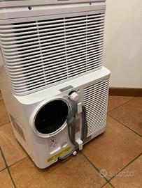 È in perfette condizioni, usato poco. Acquistato 5 anni fa. Dispone di tre modalità: condizionatore, deumidificatore, ventilatore. Ha la modalità notte, più silenziosa e la regolazione delle alette. Il tubo di sfogo dell'aria è allungabile e può essere curvato.