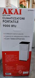 vendo condizionatore portatile marca Akai capacità di raffreddamento 9000 btu; telecomando; 2 differenti livelli di velocità; basso livello sonoro; airLock in regalo. tutto nuovo, mai usato! prezzo d'acquisto euro 199,00. Vendo a 120,00. Ritiro a mano.