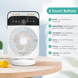 Condizionatore Portatile, Mini Condizionatore USB, 300ml Raffreddatore D'Aria Con 4 Velocità, Oscillazione di 70° Mini Ventola, Mini Climatizzatore Con Timer e Umidificatore