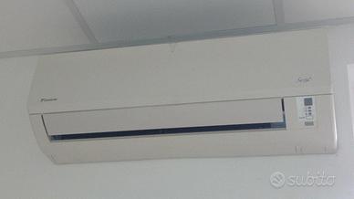 Climatizzatore Daikin della serie Siesta, sistema split con unità interna e unità esterna. Marchio noto per affidabilità, silenziosità e durata nel tempo. Ideale per raffrescare o riscaldare ambienti domestici grazie alla funzione pompa di calore.