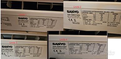 Vendo condizionatori usati Sanyo con inverter a pompa di calore, composti da: n.2 unità esterne dual modello SAP-CMRV1426EH n.3 unità interne modello SAP-KMRV74EH n.1 unità interne modello SAP-KMRV124EH completi di telecomando. Possibilità di spedizione con pallet (da concordare).