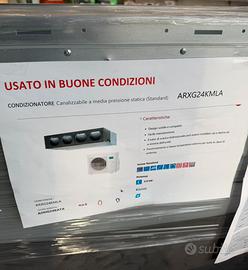 Condizionatore canalizzato 24000 BTU a media pressione statica (Standard). Marca General Unita interna codice ARXG24KMLA Unita esterna AOHG24KATA Compreso telwcomando originale e staffe unita interna Usato poco perfettamente funzionante