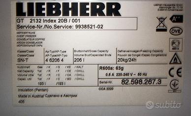 Vendo per inutilizzo congelatore Liebherr GT2132 dimensioni L 755 - P 760 - H 920 - 193 LITRI CLASSE A++