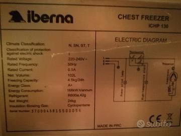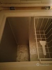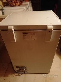 Congelatore a pozzetto Iberna di Candy in ottimo stato capacità circa 100 litri dimensioni h82 lungh 55 prof 51 bianco classe A come da etichetta facile da spostare con rotelle con cestello e comparto rialzato bianco sportello con apertura totale euro 50