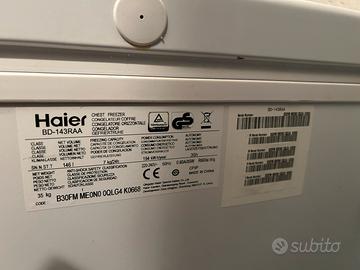 Vendo per trasferimento Haier BD143RAA, Libera installazione, Оrizzontale, In alto, A+, Bianco, SN, THaier BD143RAA. Installazione: Libera installazione, Tipo: Оrizzontale, Colore del prodotto: Bianco. Capacità netta congelatore: 146 L, Capacità di congelamento: 13 kg/24h, Autonomia senza energia elettrica: 35 h. Classe efficienza energetica: A+, Consumo energetico annuo: 194 kWh. Larghezza: 72 cm, Profondità: 55 cm, Altezza: 84,5 cmClasse A+ La classe di efficienza energetica A+ utilizza il 25% di energia in meno rispetto ad un frigorifero di classe A. prezzo non trattabile . Ritiro solo in loco e non si effettua la spedizione.