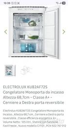 Congelatore ad incasso del 2023 in perfette condizioni. Sostituito per rinnovo cucina. Disponibile da subito. Ritiro a cura dell'acquirente.