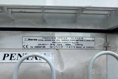 Cod. ATRIS422 Congelatore - freezer usato Funzionante Marca: Iberna 220 V 0,72 kw Gas R600a Capacità: 101 litri Dimensioni: Lunghezza: 580 mm Profondità: 600 mm Altezza: 850 mm