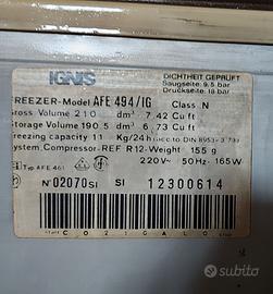 congelatore a pozzetto Ignis modello AFE 494/IG, c Capacità: Il volume lordo è di 210 dm³ (litri), con un volume di conservazione netto di 190,5 dm³.