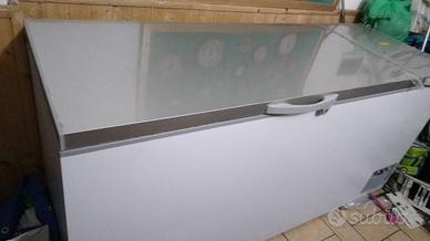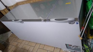 Congelatore orizzontale con coperchio basculante, per la conservazione in classe 5L1 di prodotti congelati da -25°C a -18°C.Refrigerazione statica, sbrinamento manuale, 700 Litri. Chiusura con chiave, coperchio Inox.