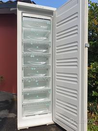 bellissimo congelatore verticale no frost miele classe A, con 8 cassetti e sezionatore contenuto e data di alimenti regolabile su ogni cassetto.