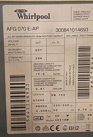 Vendo congelatore Whirlpool mod. AFG 070 E-AP 204 litri classe A+ perfettamente funzionante. Prezzo € 70,00 ritiro e trasporto a carico dell’acquirente.