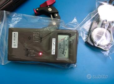 Fantastico Contatore Geiger compattissimo con strumento ad ago analogico velocissimo nella risposta di alta qualità costruttiva con sonda e di alta qualità e stabilità.