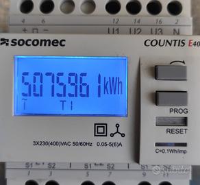 Contatore trifase Socomec Countis E43 6A Mid Materiale in ottime condizioni, usato funzionante testato. Come da foto azzerato il conteggio parziale.