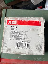 prodotto è un contatto di segnalazione ABB modello S9-S (codice EE 611 8). Funzione: Contatto ausiliario per la segnalazione di stato o guasto. Compatibilità: Progettato per essere abbinato a interruttori automatici modulari o interruttori differenziali ABB. Caratteristiche tecniche: Supporta tensioni fino a \(250V\) AC e correnti di commutazione specifiche indicate sul corpo del dispositivo. Installazione: Si monta lateralmente all'interruttore principale.