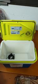 Contenitore termico elettrico Gio'Stile. capacità 21 lt. ricarica 12volt con cavo in auto. con maniglia ergonomica e blocca coperchio. ottimo isolamento. misure circa 40 x 40 x 25. peso circa 3 kg.