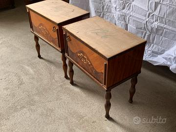 Coppia Comodini Legno Intersiato primi 900 Italia