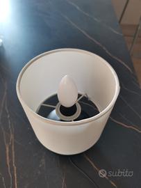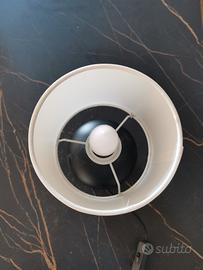 Caratteristiche principali: design minimalista con base rotonda in finitura nera opaca e paralume cilindrico in tessuto bianco. Ideale per comodini, scrivanie o angoli lettura.