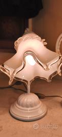 Coppia Lampade comodino abat jour in ottone classico avorio 1 luce paralume In Vetro Bianco a forma di giglio forgiato a mano da maestri vetrai Veneziani con bordo smerlato. Misure rilevabili in foto .