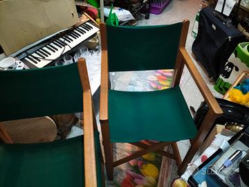 coppia di due belle sedie in legno e tela pubblicitarie della nota birra san miguel pratiche e comode da portare con sé magari durante vacanze escursioni al mare in spiaggia - campeggio - montagna - pic nic o semplicemente da tenere in casa o in giardino