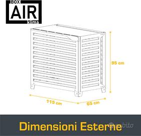 Box Air Klima Big Blade XL – Copri Climatizzatore Esterno in Alluminio Composito e Telaio INOX 316, Installazione a Pavimento, 115×103×65 cm – Copertura Pompe di Calore.