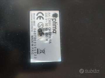 Crepiera elettrica Optima. Funzionamento con presa Bosch, riscaldamento immediato. Lievi segni sulla superficie che non ne compromettono funzionamento. Compreso vassoio/copertura in plastica.